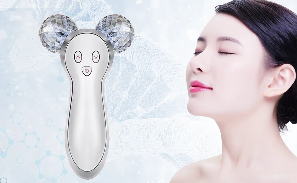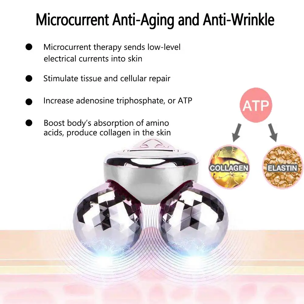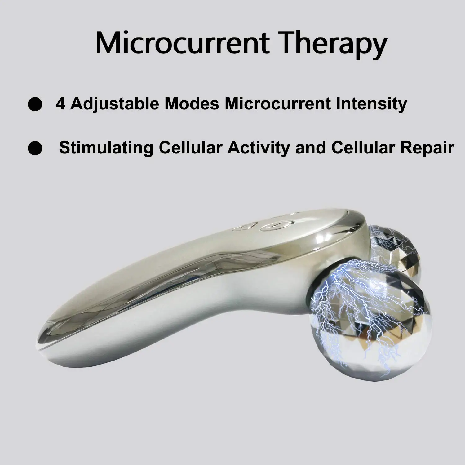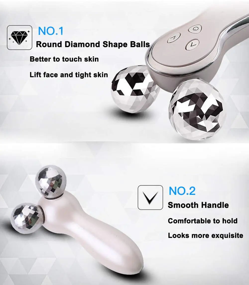 3D-Gesichts-Lifting-Roller-Massagegerät Akupunktur-Mikrostrom-Hautroller Elektrische Vibrations-Gesichtsmassage 360° drehbar Metall-Körperformer